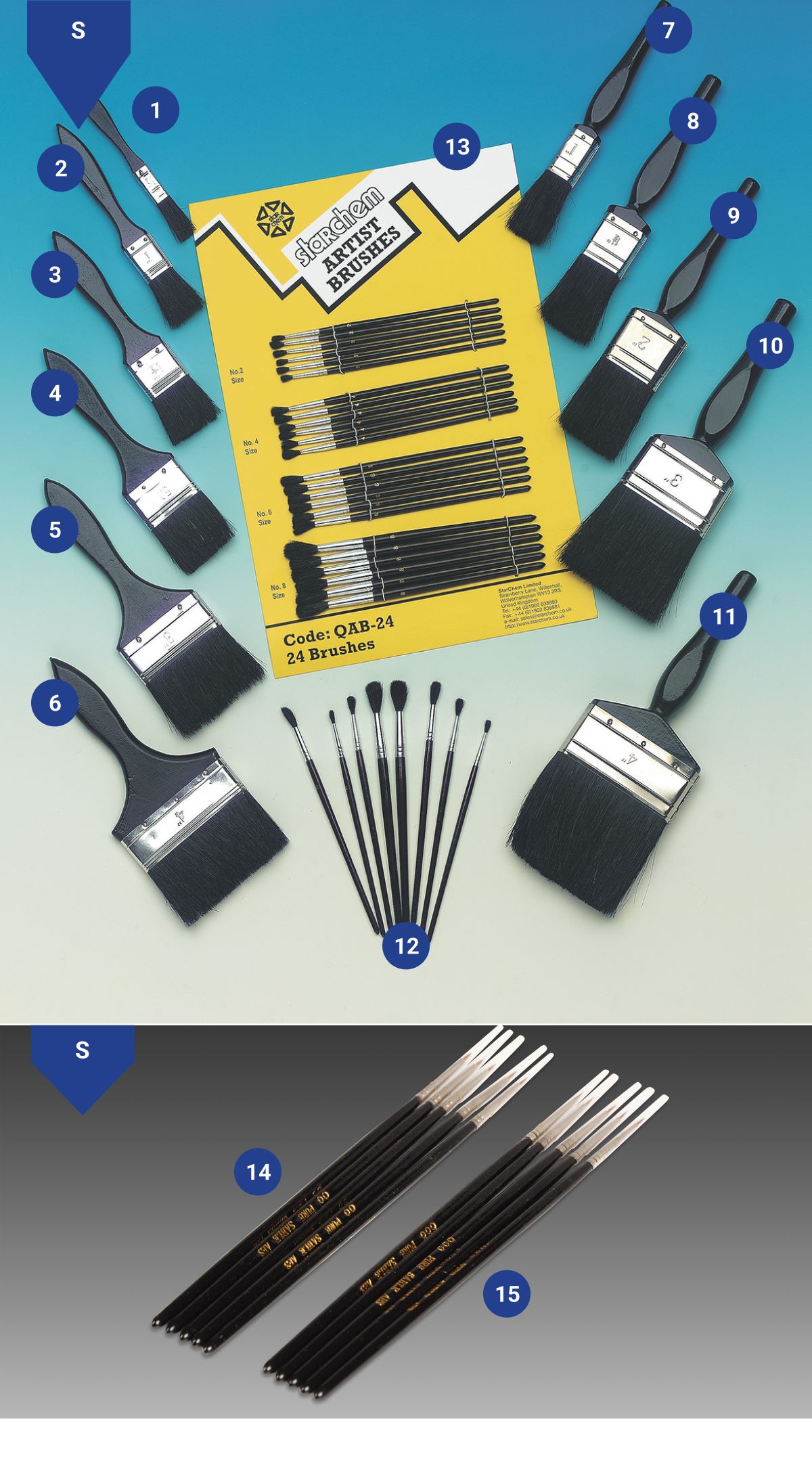 Eine Auswahl an Lackpinseln für die Lackierung, Reinigung und Aufbesserung.
