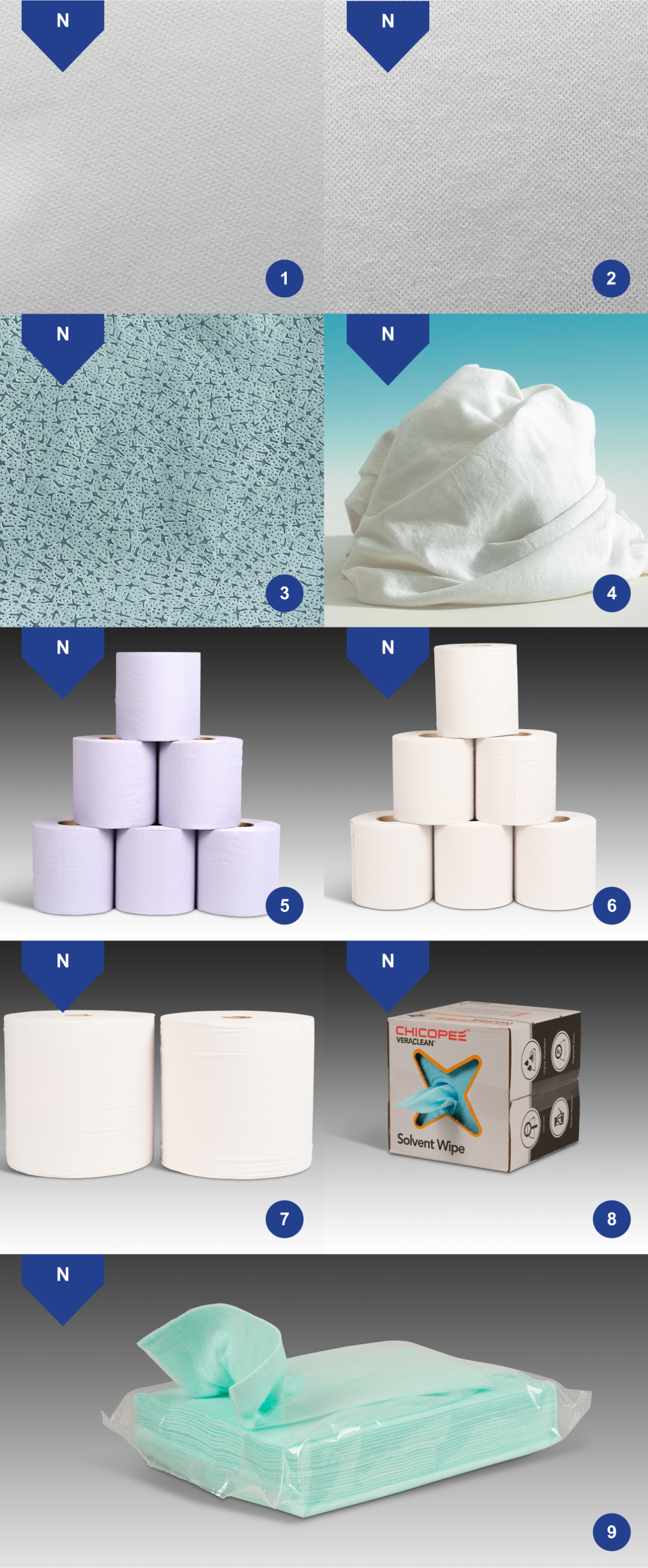 Alles von Mehrzweckpapiertüchrollen bis spezialisierte Lösungs- und Poliertücher.