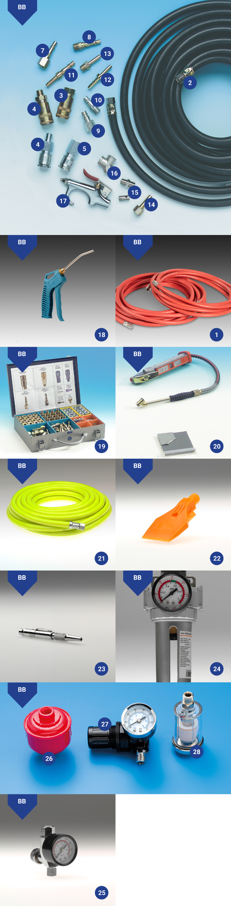 Mangueras de caudal normal y alto, y color fluorescente para mayor seguridad. Los racordes de marca PCL originales de primera calidad complementan perfectamente las mangueras de aire.