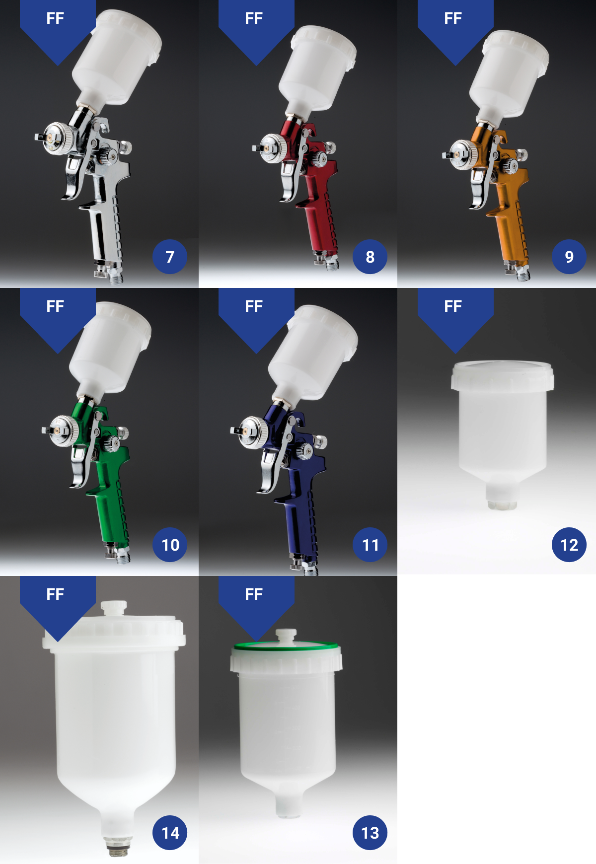 Pistolas mini de 0.8 y 1.0mm, en colores diferente. Tenemos botes de recambio para las pistolas, y recambio de las agujas.