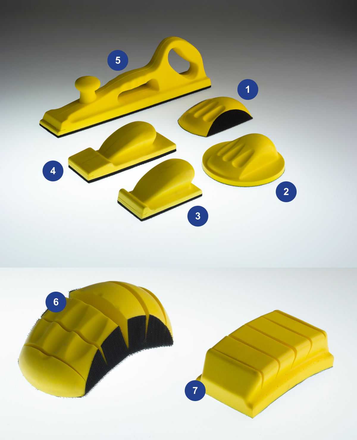 Blocs de ponçage manuels individuels de différentes formes et tailles pour vous aider à accomplir le travail.