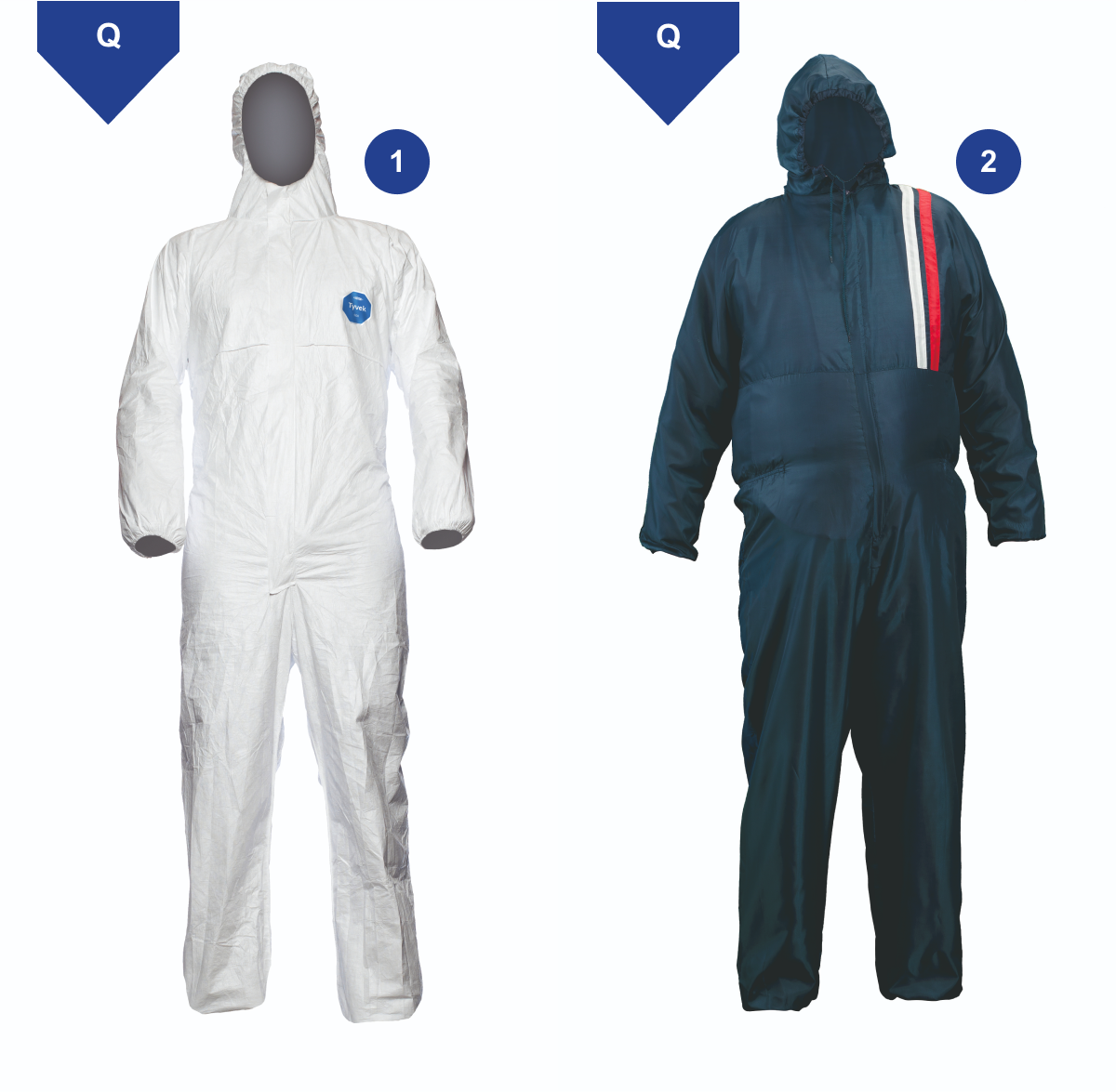 Choose from disposable type 5 & 6 overalls from DuPont Tyvek or resuable, washable, CE marked nylon overalls for durability.