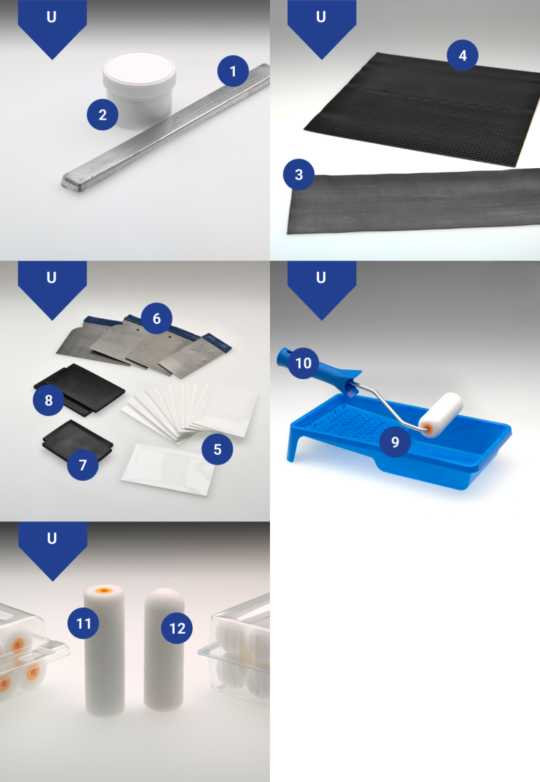 Indispensible bodyshop items such as spreaders, sound deadening pads, foam rollers and trays.