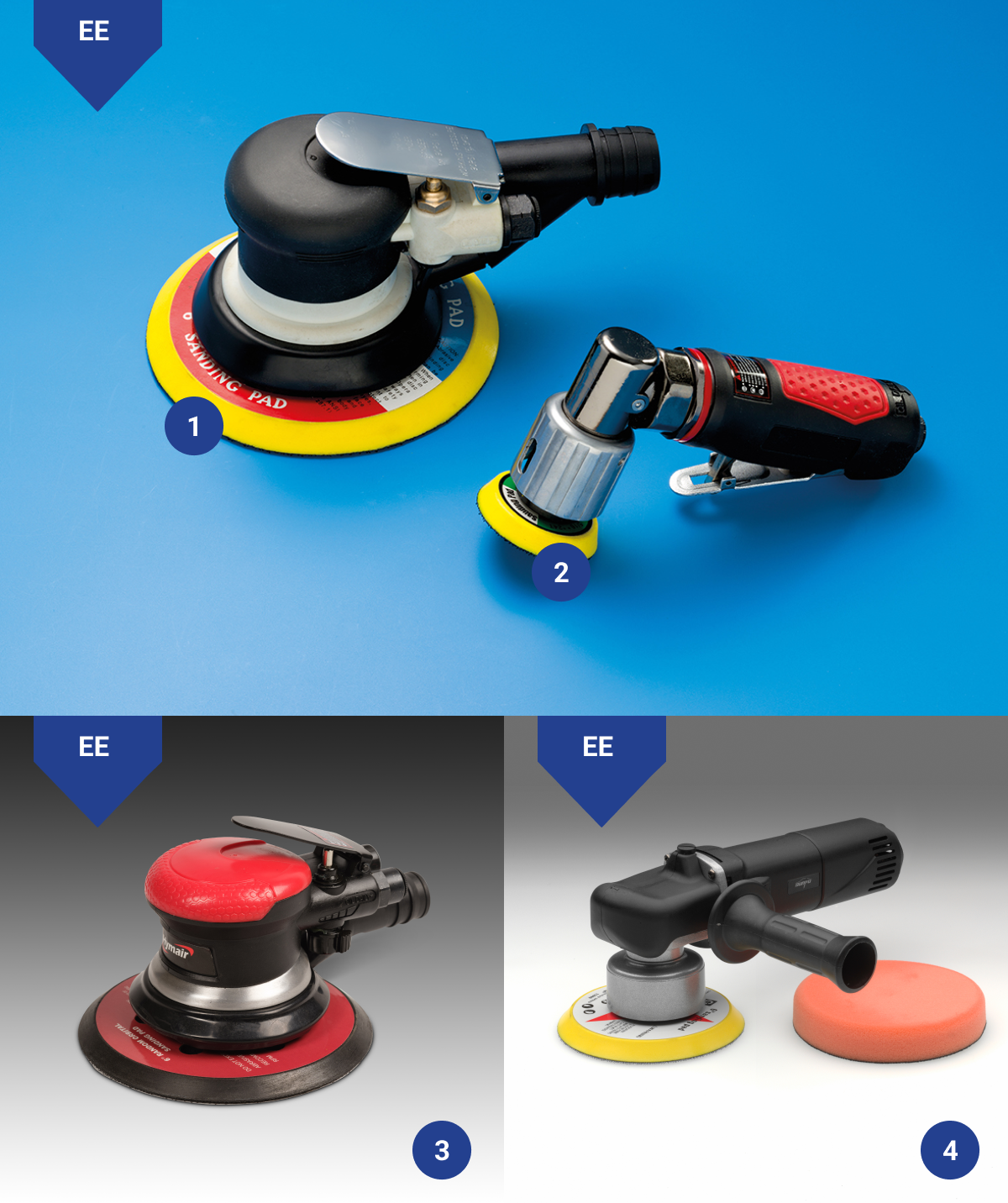 Posibilidad de elegir entre dos lijadoras neumáticas de 150 mm o una lijadora angular más pequeña para las zonas de más difícil acceso.
