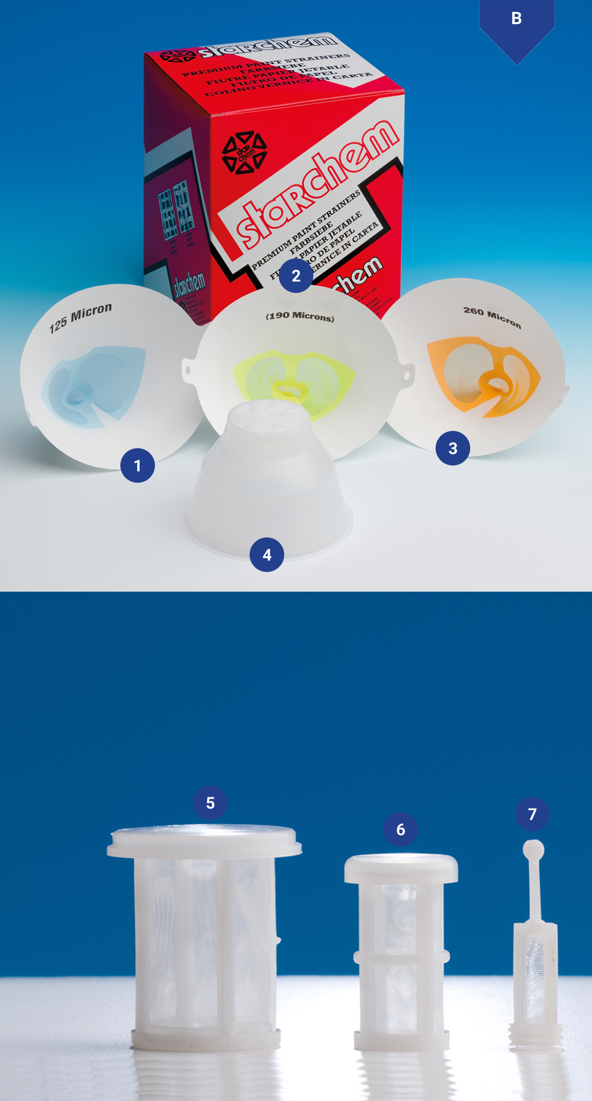 Uma seleção de coadores de tinta Gerson de alta qualidade e filtros de pistola.